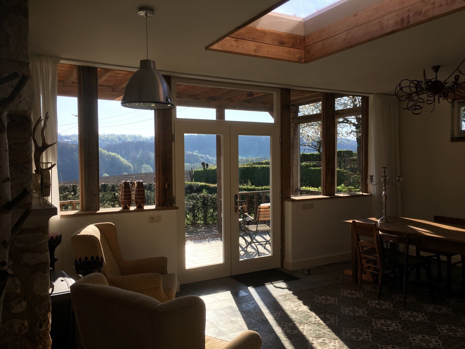 Onze authentieke veldbrand vakantiewoning is van binnen volledig nieuw en straalt de sfeer van rust en tijden van weleer uit. Ze is gelegen bij onze hobby boerderij die in dezelfde stijl is gerenoveerd. Door de grote raampartij aan de voorzijde van de woning en op het overdekte terras kunt u genieten van het spectaculaire uitzicht op ons Gulpdal en zijn hellingbossen. Voor het terras heeft u uw eigen grasveldje om lekker te zonnen of als speelveldje voor de kinderen.